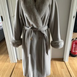 Elegant äkta brun päls. Pälsen är lång och har en klassisk design. Den är tillverkad i Sverige av Södra Päls i Norrköping. Skulle säga att den passar S-L.