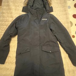 Snygg och bekväm denimjacka i storlek M. Jackan har varmt, mjukt foder på insidan av kroppen och fuskpäls runt huvan- men ärmarna har inte foder, vilket gör den smidigare och perfekt för höst och vår.Jackan har en ljusare tvätt och dekorativa detaljer som fickor med lock och en sliten effekt på framsidan och baksidan.