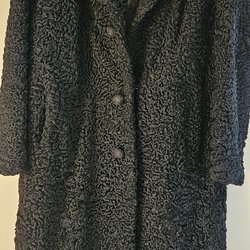 Fårskinnspäls från 80-talet. Dam i storlek 38. Längd ca 115 cm. 3 stycken sömmar behöver sys om vardera ca 5-6 cm se bild på en. Översta knappen under kragen saknas. Härlig päls