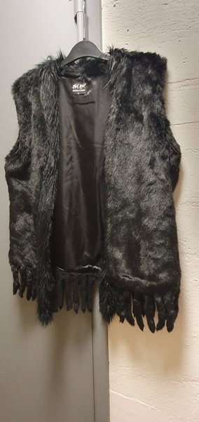 Snygg svart "päls"väst med fransar,