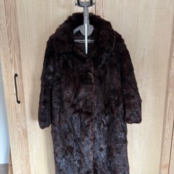 Elegant brun kappa med krage och manschetter i äkta päls. Kappan har en dekorativ bälte i midjan och knäpps med knappar framtill. Perfekt för att hålla värmen med stil.