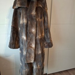 Vintage brun mink päls kappa för dam i storlek L/XL Lång modell i brun päls med krage och hel längd. Kappan har lång ärm och slät insida med foder. Passar som ytterplagg under kalla dagar och kan användas både till vardag och mer uppklädda tillfällen.