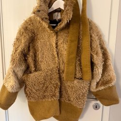 Olivgrön jacka från Filippa K. Jackan har flera fickor framtill och en dragkedja med knappar. Den har även en huva som kan gömmas undan. Perfekt för både vardag och äventyr.
