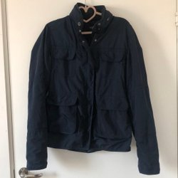 Vindtät mörkblå jacka i storlek M, dock lite liten i storlek - se mått: