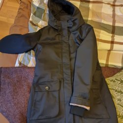 Varm vinterjacka från Elvine. Jackan har ett foder av fuskpäls (se bild) och har även ett vattentätt membran.