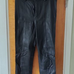 Ljusgrå-beige (stenfärgad, kittfärgad) jacka med dragkedja och fickor fram. Jackan har en klassisk biker-modell med knappar vid kragen och detaljer på ärmarna. Använd men ger fortfarande ett väldigt fint helhetsintryck, se bilder. Den är supermjuk i skinnet, och lite boxy/oversize i modellen. Den var dyr i inköp