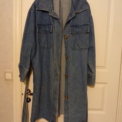 Lång, orange jacka med huva. Jackan har en dragkedja och knappar framtill, samt fickor på sidorna. Perfekt för kyliga dagar. En rymlig L . Svårt att få till bra foton men jättefin i färgen ... jag behövde tydligen ett x framför L