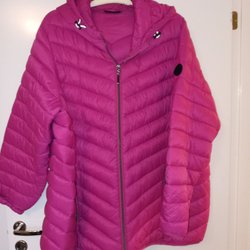 Fuchsiafärgad jacka med dragkedja fram och två fickor med dragkedja. Jackan har en liten ficka med dragkedja upptill på vänster sida.