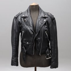 Svart jacka med dragkedja och detaljer i silverfärg. Jackan har en klassisk biker-modell med asymmetrisk dragkedja fram och två fickor med dragkedja. Dekorativa detaljer på axlarna.