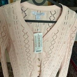 Svart jacka med krage och foder i teddy material. Jackan har två bröstfickor och stängs med knappar.