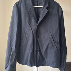Black biker jacket with zipper and front pockets. 100% washed lamb leather for a super soft feel. Lightly padded. Bust 52cm Length 70cm. Men's size S - women's size L. In new condition.