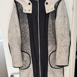 Vit jacka med fickor framtill och dragkedja, från Zara, storlek S men sitter oversized. Väldigt tjock och ganska varm så passar till tidig vinter eller vår! ??