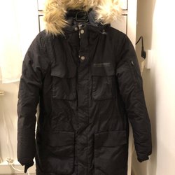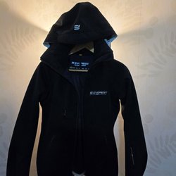 Svart jacka med dragkedja och fickor med dragkedja fram. Jackan är använd 2-3 ggr . Stl 34