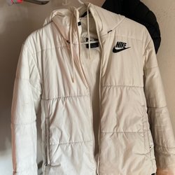 Vit varmfodrad jacka med dragkedja fram och fickor med dragkedja. Jackan har en hög krage.Löstagbar huva.