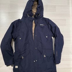 Mörkblå Didriksons vinterjacka med huva. Jackan har flera fickor fram och en innerficka. Perfekt för kalla dagar.