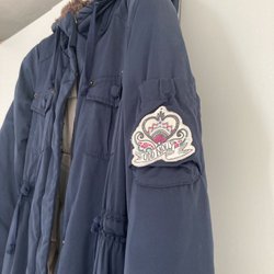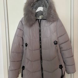 Grönbrun vinterparkas från Only med dragkedja och knappar framtill. Jackan har en huva med fuskpäls, dragsko i midjan och flera praktiska fickor, inklusive en ficka med dragkedja på ärmen. Några av öglorna till knapparna är lite trasiga men det går fortf att knäppa med dom.