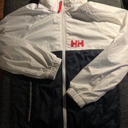 Marinblå bomberjacka med dragkedja fram och en liten ficka med dragkedja på vänster ärm. Jackan har resår i nederkant och ärmslut.