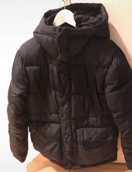 Svart pufferjacka med huva. Jackan har en dragkedja och knappar framtill, samt två fickor nedtill. Från stadium . Ej dun men är vinterjacka . Bra med fickor både upptill i sidorna och 2 större nertill samt innerficka . Unisex modell står XS men är som small - medium . Hund finns i hemmet, rökfritt hem . Nypris 1499kr. Sparsamt använd .