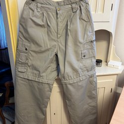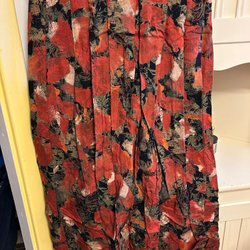 Lång jacka med huva och dragkedja framtill. Jackan har fickor i sidorna och knappar vid kragen. Huvan är löstagbar med tryckknappar. Riktigt varm och bylsig och go. Den har ju några år på nacken, men hel och ren vad jag kan se. Storlek ca 42 och tror det är nåt syntetmaterial . Behöver strykas på lite