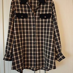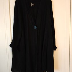 Jacka med krage och knäppning framtill. Jackan har två bröstfickor med knappar samt två sidofickor. Ärmsluten har varsin knapp.