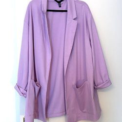 Mörkbrun jacka med dragkedja och fickor fram. Jackan har ett teddyfoder och en ribbstickad krage.