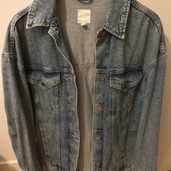 Oversized jeansjacka med lite puffärmar. Väldigt sparsamt använd. Jag är storlek M-L och kan ha denna trots att den är i storlek S.