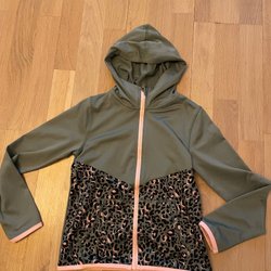 Svart bomberjacka med dragkedja framtill och en liten ficka med dragkedja på vänster ärm. Jackan har resår i halsen, ärmslut och nederkant.Kortare modell.Knappt använd.