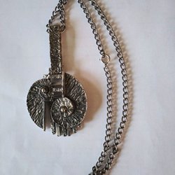 Jackan har ett mönstrat parti över bröstet och axlarna.