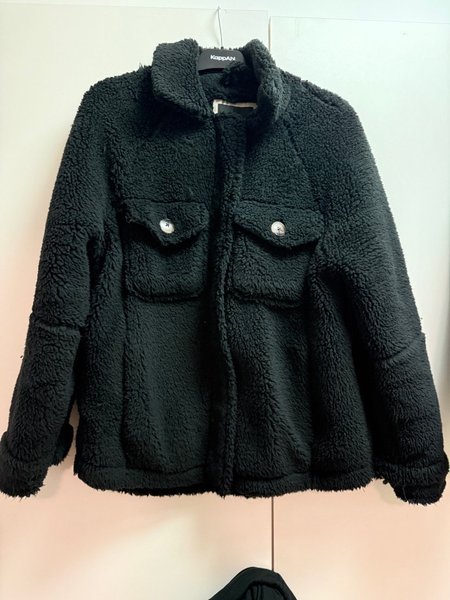 En mysig och stilren jacka med teddy-textur. Jackan har en krage och två fickor med knappstängning framtill.