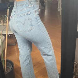 En jacka med dragkedja framtill och två fickor med dragkedja. Jackan har även dragkedjor vid ärmsluten. Insidan är fodrad med ett ljust, luddigt material som även syns i kragen. Fint använt skick!!