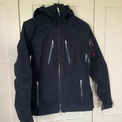 Använd och har blivit lite sliten på ärmslut och vid fickor. Men har mycket kvar att ge.