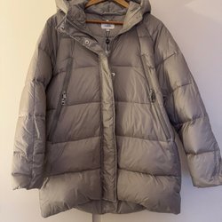 Rosa pufferjacka med huva.