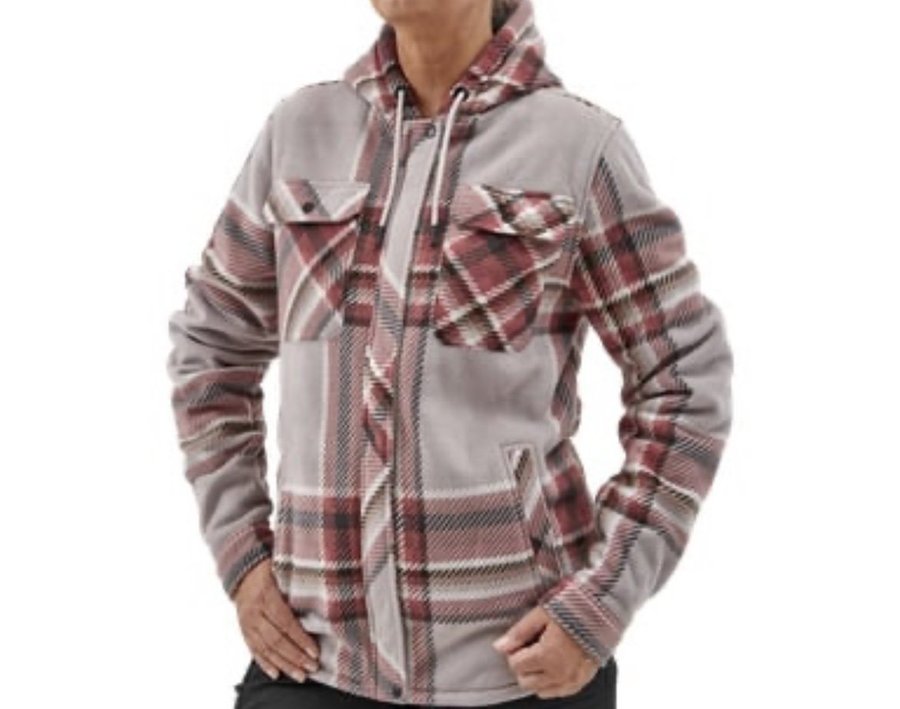 Rutig höstjacka med huva och dragkedja. Jackan har två bröstfickor med knapp och två sidfickor. Är mjuk o skön inuti! Obs! snöret på vänster sida! Den råkade bli utdragen, lätt att åtgärda! Endast använt 2 ggr