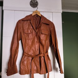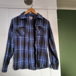 Mörkblå jacka med krage och knappar framtill i manchestertyg. Storlek Xs men lite oversize.