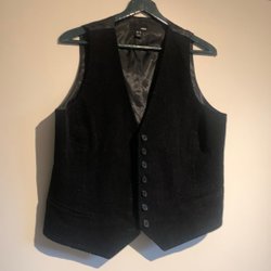 Svart skinnväst med knäppning framtill och justerbar rem baktill. Två fickor fram.