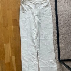 Eleganta, figurnära byxor i en ljusbeige nyans. Byxorna har en smickrande passform och en modern slitsdetalj nedtill. Perfekta för både vardag och fest.