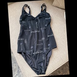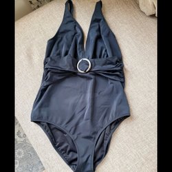 Elegant sort badedragt med smalle stropper og en smuk detalje foran. Badedragten har en flatterende pasform.