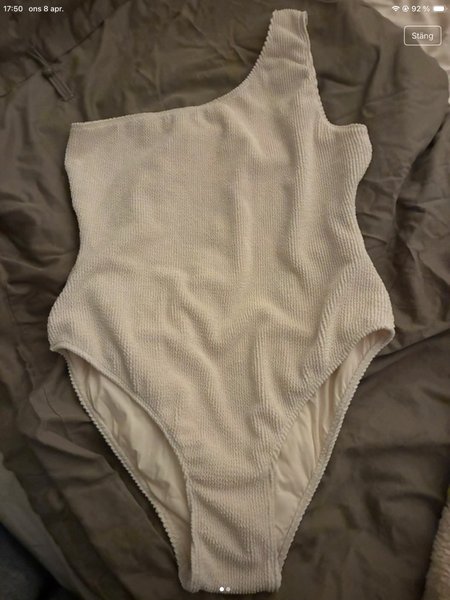 Baddräkt i enaxlad design med texturerat tyg. Baddräkten är enfärgad i en ljus nyans.