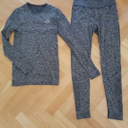 Två sporttoppar träningstoppar från H&M. Den ena är en lila t-shirt och den andra är ett gråsvart linne med ett geometriskt mönster. Bägge använda ett fåtal ggr. I skick som nya. Från djur-och rökfritt hem.