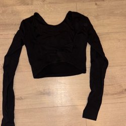 Grå träningsjacka med dragkedja och långa ärmar med tumhål. Liten fläck de sista sidan.