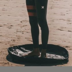 En röd och svart vindjacka med gråa detaljer. Jackan har en dragkedja framtill. Byxorna är svarta och har en dragkedja vid ben. Både jackan och byxorna har reflexdetaljer.