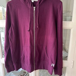 Rosa träningsjacka med dragkedja fram och huva. Jackan har en liten ficka med dragkedja bak.