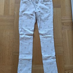 Fila, fina blå träningsbyxor med resår och dragsko i midjan. Fila logotypen finns tryckt på benet. Strl M men liten i storlek tycker jag .