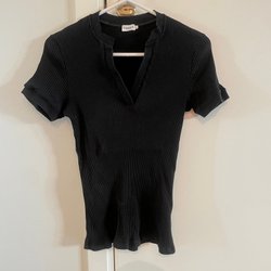 Brunfärgat set från Stronger. Setet består av ett par utsvängda byxor med hög midja och en kortärmad t-shirt. Mycket fint skick.