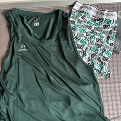 Helt nyt Newline træningssæt bestående af en jakke og et par bukser. Jakken er i farverne khaki og sort med en lynlåslomme på brystet og en refleksstribe. Bukserne er sorte med elastik i taljen og ved anklerne.