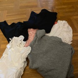 Kläderna är i ett använt med bra skick, en del är oanvända, och vissa sparsamt använda.