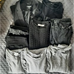 Detta är ett stort klädpaket med 13 olika plagg i storlek S/M. Inkluderar bl.a. hoodies, skjorta, långärmade tröjor, stickad kofta, pyjamasbyxor och leggings. I fint skick!