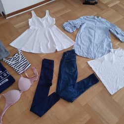 Klädpaket 36 s h&m Stretchjeans stickad tröja highwaist klänning leggings