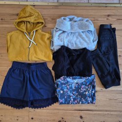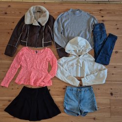14 plagg I storlek 34/XS. Den vita oanvända kjolen har en liten fläck, se sista bild