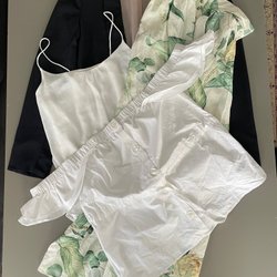 • Ett grönt pyjamaser med tröja och shorts